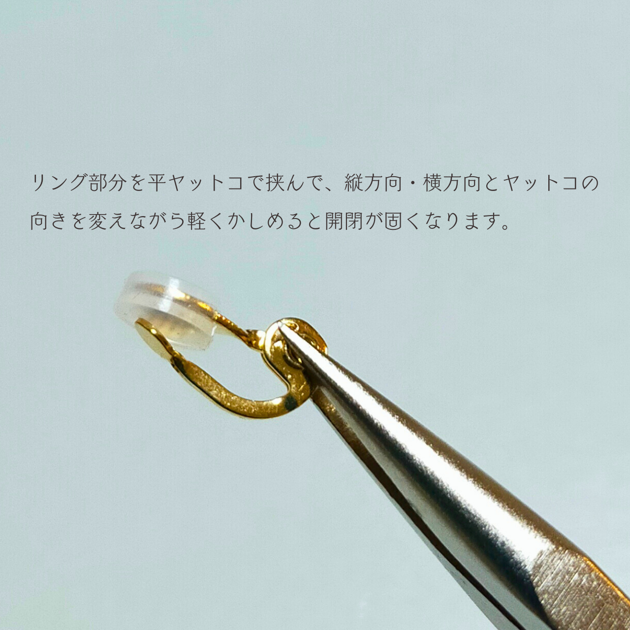 適度に調節することによりイヤリングの落下事故を防止することが出来ます。